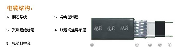 自控溫電伴熱帶滿足EXeIIT4,最高表面溫度為135℃,以下為產(chǎn)品結(jié)構(gòu)示意圖: