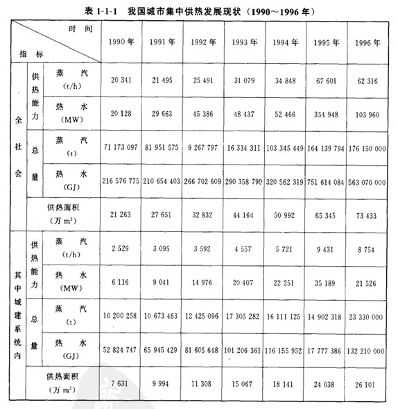 我國(guó)城市集中供熱(僅指有集中熱源.通過管通愉送熱煤的傳熱系統(tǒng))發(fā)展很快,詳見表1-1-1。