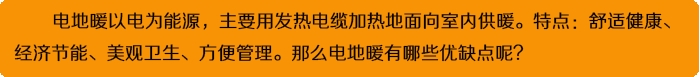 隨著人們生活生活的不斷提高,對供暖方式的舒適性也有了相應的提高,傳統供暖方式難以滿足人們對于舒適性的要求,而以加熱地面的電地暖以舒適、健康、節能、環保、壽命長等多項獨特優勢,風靡歐美日韓發達國家和世界各地,被世界暖通界公認為最理想、最先進的供暖方式之一。
