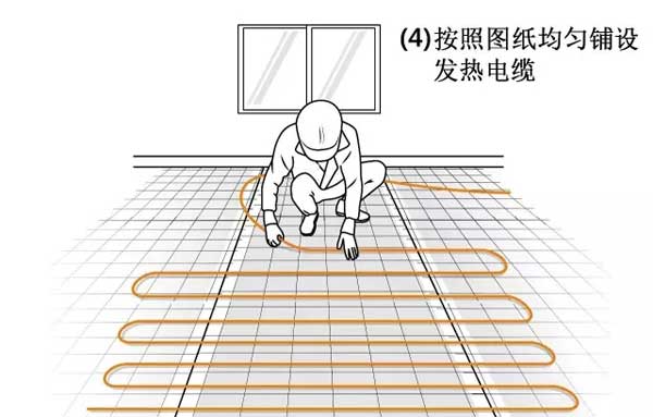 3、按照圖紙均勻鋪設(shè)發(fā)熱電纜;